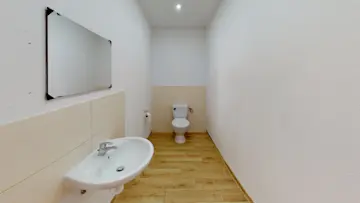 Die Gewerbefläche erstreckt sich auf zwei Etagen und bietet insgesamt 243 Quadratmeter Platz für Ihr Büro, Ihre Praxis oder Ihre eigenen Ideen. Im Erdgeschoss befindet sich ein heller Eingangsbereich, der sich perfekt als Empfang oder Foyer eignet. Zudem gibt es zwei abgetrennte Toiletten auf insgesamt 48 Quadratmetern.