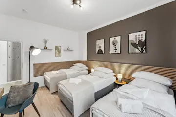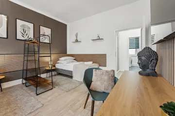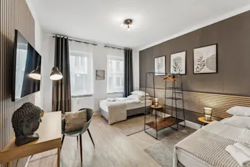 Entdecke unsere eleganten Apartments! Zentrumsnah aber in einer ruhigen Nebenstraße erwartet die das CozyHome Apartment House. Unsere modernen Apartments begeistern mit hochwertiger Einrichtung und Stil. Jedes unserer Apartments verfügt über eine vollwertige Einbauküche, HD TV mit Netflix und 500 MBit WLAN. Der jederzeit mögliche kontaktlose Check-in durch smarte Türschlösser sorgt für Bequemlichkeit. Ob geschäftlich oder zur Erholung - dein CozyHome wartet auf Dich.