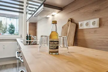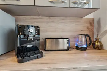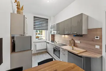 Tauche ein in Luxus und Gemütlichkeit! Dieses Apartment bietet mehr als nur zwei Räume - es schafft Atmosphäre. Die beiden Wohn- Schlafzimmer verbinden modernes Design und einladende Gemütlichkeit. Neben einer digitalen Heizungssteuerung sorgt jeweils ein Smart TV mit Netflix pro Schlafraum und eine 500 MBit Internetverbindung Entertainment. Die separate hochwertig ausgestattete Küche mit dem Sitzbereich bietet alle Annehmlichkeiten.